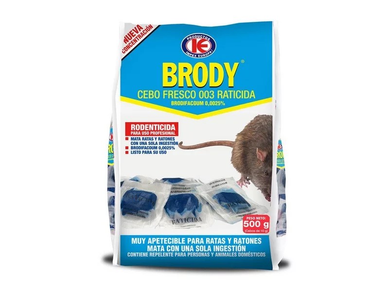 Cebo fresco de gran apetencia formulado con harinas y aceites vegetales indicado para la eliminación de ratas y ratones con una sola ingestión. Cebos de 10 g.