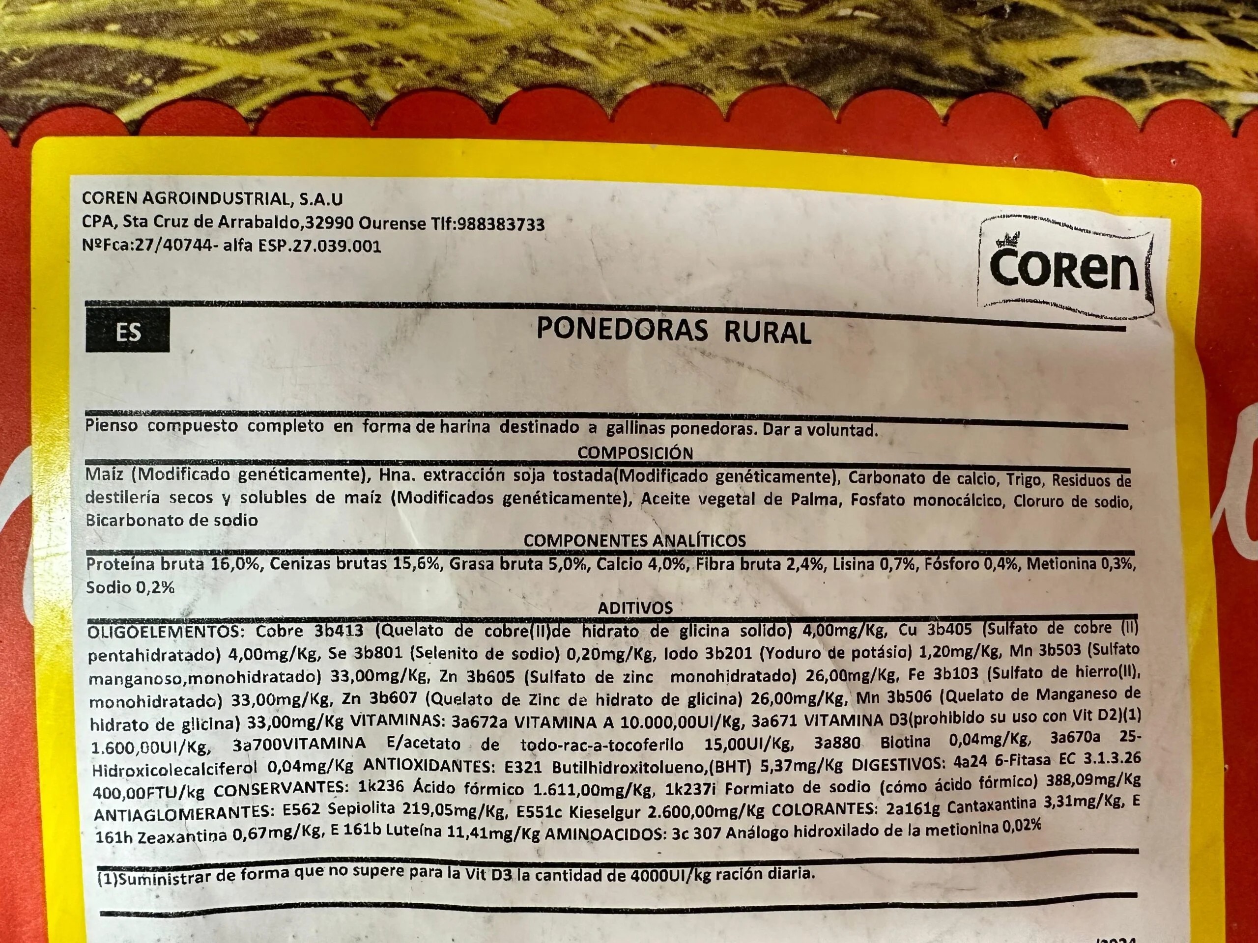 Pienso compuesto completo en forma de harina destinado a gallinas ponedoras. Dar a voluntad.