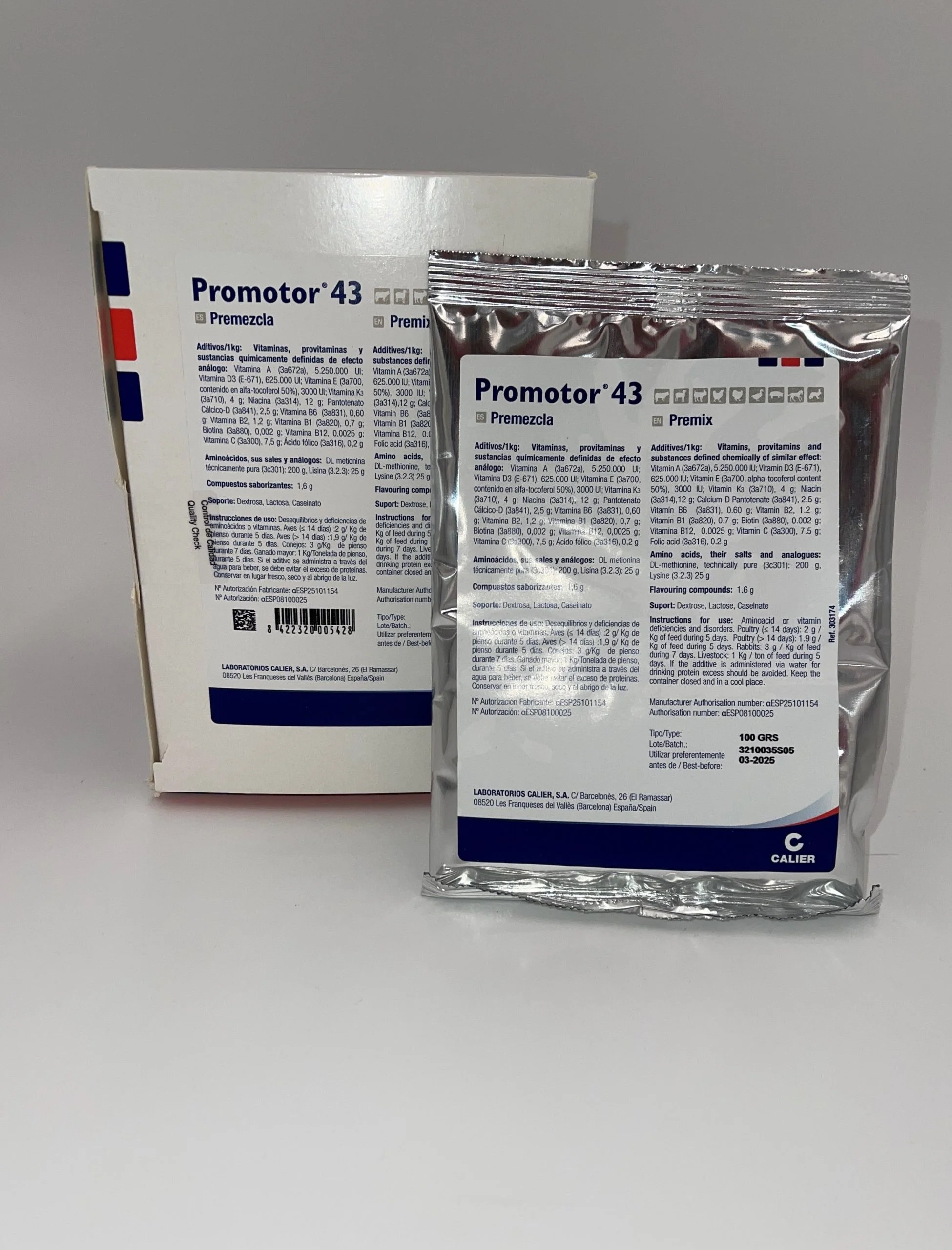 Promotor 43 es un suplemento vitamínico diseñado para la revitalización de distintas especies animales de corral o ganadería. Está especialmente recomendado para su aporte durante épocas o procesos de decaimiento, exigencias específicas de rendimiento o durante el periodo de lactancia, entre otros.