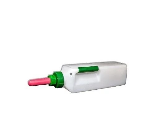Gracias al asa de este biberón para terneros, la administración de alimento al animal será muy sencilla y cómoda para el usuario. Está fabricado con materiales de calidad para ofrecer una mayor durabilidad en el tiempo de este producto y por lo tanto garantizar que es una buena inversión. La tetina puede recortarse en su punta para incrementar el flujo de líquido y poder adaptarse mejor a la demanda del animal.