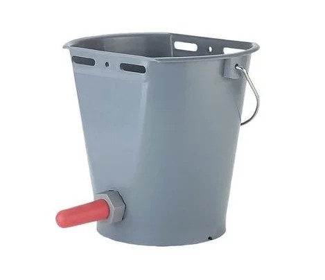 Este cubo de lactancia tiene 8 Litros de capacidad y cuenta con 1 salida por lo que si tienes que dar de comer a un solo ternero es lo que buscas.