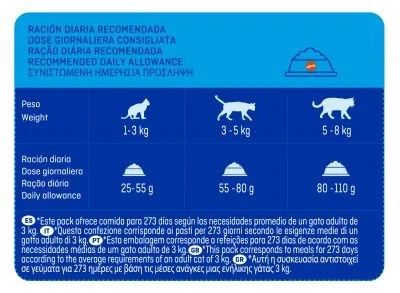 Su formulación saludable está diseñada para mantener a tu gato en plena forma ya que le aporta múltiples beneficios físicos. Además, este alimento contribuye al buen funcionamiento del tracto urinario, gracias a que controla el nivel de PH de su orina. El omega 3 y el omega 6 mantienen su piel sana y el pelo brillante, y su formulación con calcio y vitamina D3 asegura unos dientes y huesos fuertes. Además, la taurina ayuda al buen funcionamiento de la vista.