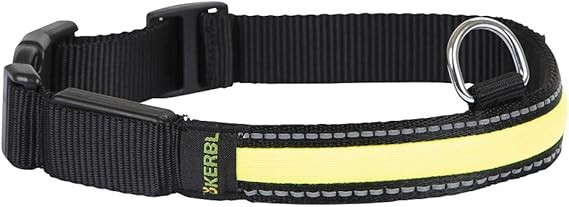 Los collares para perro light&reflex de KERBL tienen dos configuraciones de flash o una opción de luz permanente además de estar fabricados con una correa de nylon muy resistente y costura reflectante.