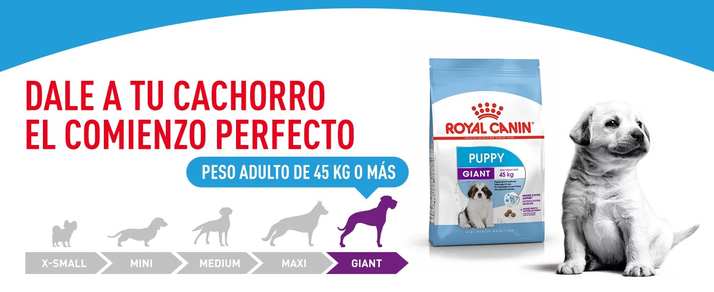 Royal Canin Giant Puppy es un alimento idóneo para acompañar a tu cachorro en esta fase tan importante de su vida. El contenido de energía especial, así como los nutrientes esenciales, fomentan el bienestar y, con ello, un gran comienzo en la vida de tu cachorro.
