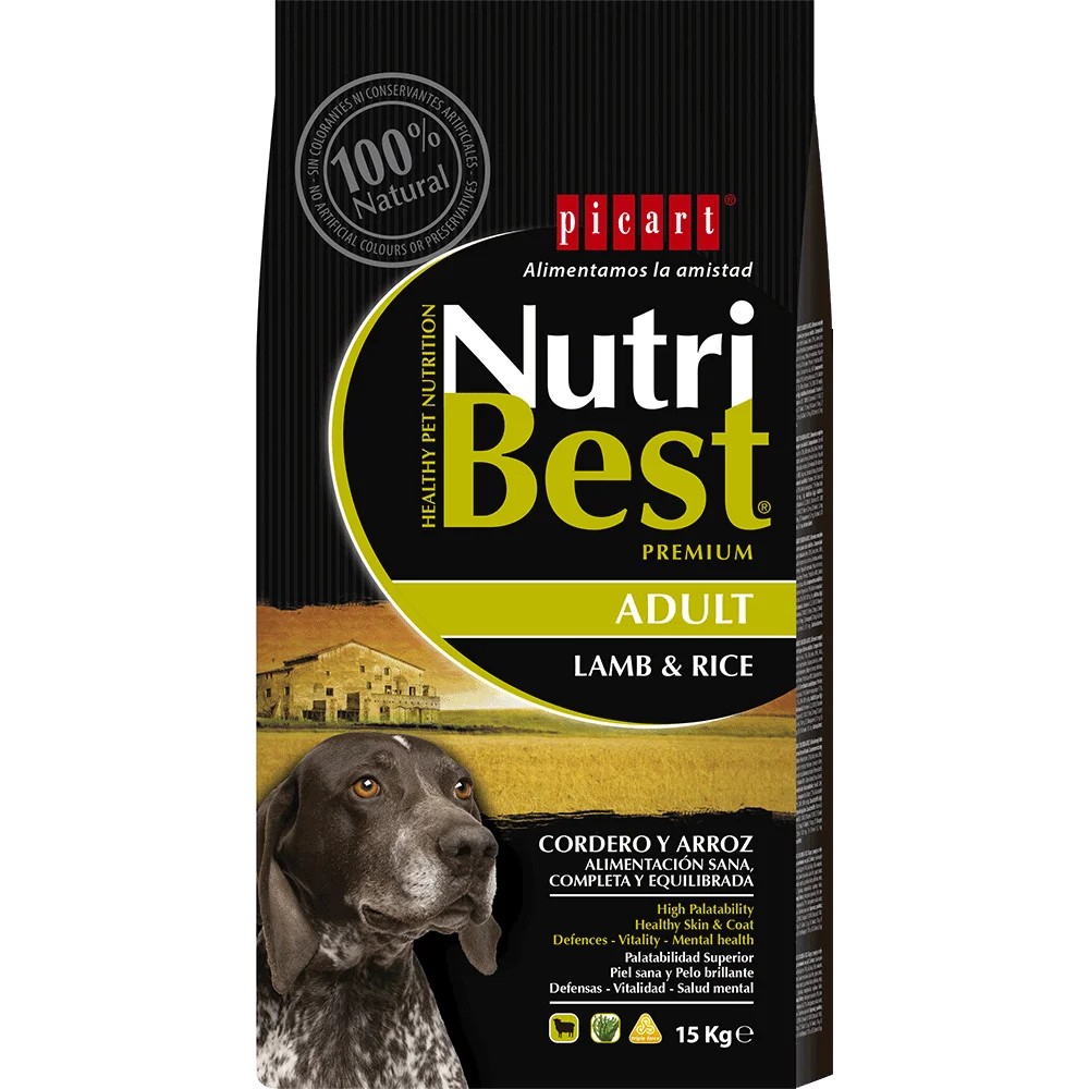 NutriBest Adult Lamb & Rice es un alimento Premium formulado por nuestros expertos en nutrición y veterinarios para que tu perro crezca sano y vital y disfrute de una salud óptima. Contiene Algas Marinas del Atlántico Norte para una piel y un pelo sanos y cuidados.