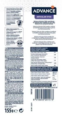 Resultados visibles en 6 semanas: los snacks Articular Stick, de Advance, combinan la funcionalidad con el sabor. Ofrecen protección ósea y articular diaria a tu perro y le ayudan a mejorar su movilidad. Al estar elaborados con ingredientes muy sabrosos, logran una alta aceptación entre los perros. Puedes emplearlos para complementar la dieta de tu perro y darle una pequeña alegría entre las comidas o, si lo prefieres, puedes dárselos como premio durante el adiestramiento o el juego.