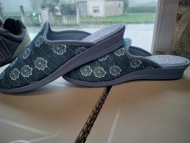 Zapatillas de casa para mujer, en color tejano con diseño de flores y puntera cerrada. Suaves y cómodas, excelente calidad, con plantilla blanda y ligeras. Fabricadas en España
