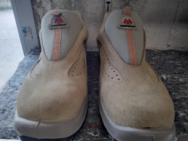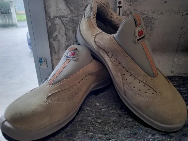 Zapaton fabricado en piel de serraje en color arena sin cordones con puntera de composite.